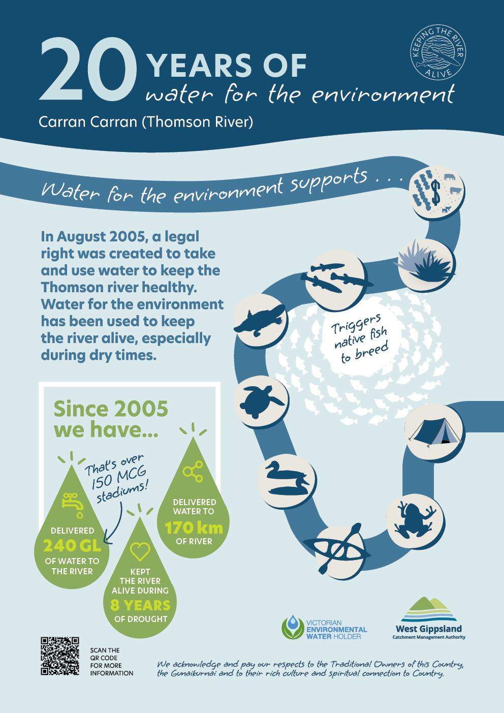 In August 2005, a legal right was created to take and use water to keep the Thomson River (Carran Carran) healthy – water for the environment!