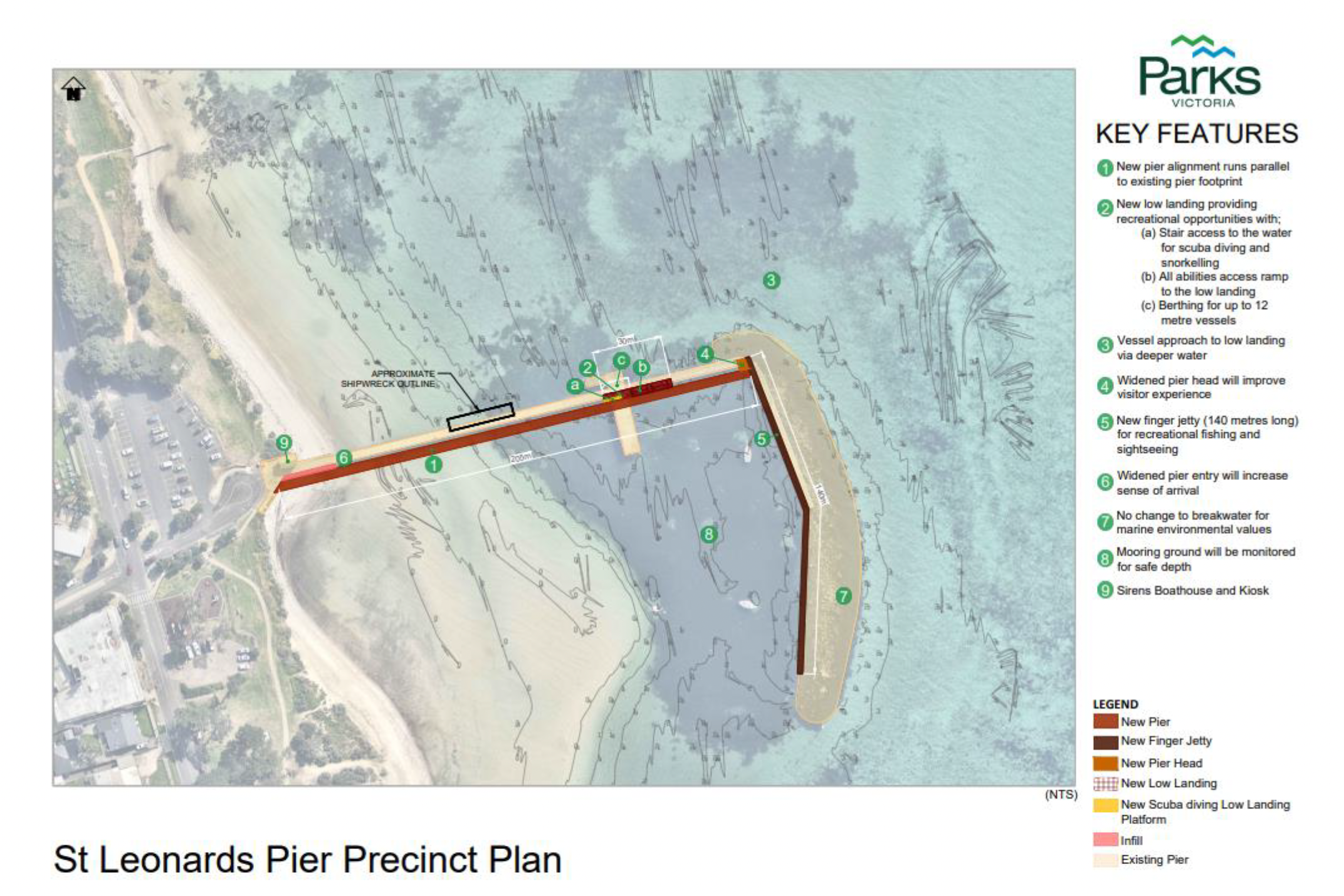 The new pier will be larger than the exisiting structure, with a new finger jetty lengthened to 140 metres, widened pier head and pier entry. The new pier will be built parallel to the existing pier footprint.