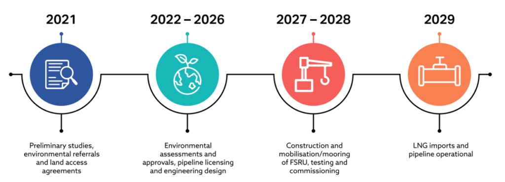 The project will include the following infrastructure: a floating, moored vessel, a pipeline, a gas receiving station and transmission line. The following diagram illustrates the project infrastructure.